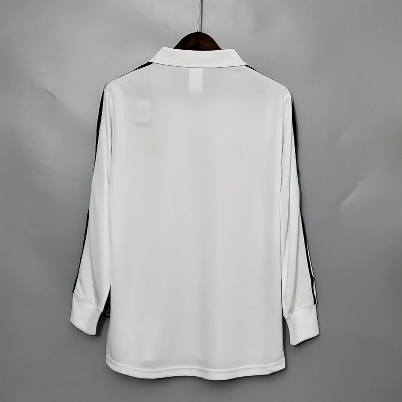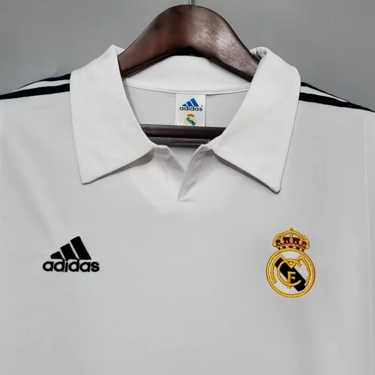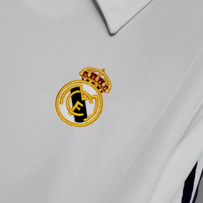 The Real Madrid 2002 Home Kit – Long Sleeve Fan Version is a nostalgic tribute to the club’s football heritage, famously worn during a historic season. This retro kit captures the essence of the early 2000s with its clean white design, accented by subtle gold detailing and black elements. Worn by legends like Zinedine Zidane, Raúl González, and Roberto Carlos, this classic jersey reflects the glory of Real Madrid’s iconic Champions League victory that year. The shirt’s timeless V-neck collar and embroidered crest evoke memories of unforgettable moments in football history. As a vintage jersey, it stands as a true collector’s item, celebrating a golden era for Real Madrid and showcasing the excellence that defined their dominance in European football. Perfect for fans and collectors, this retro kit is a must-have for anyone passionate about Real Madrid’s football legacy.