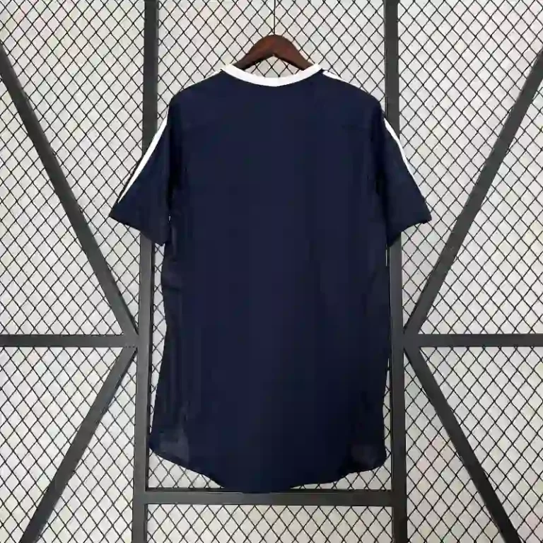 The Real Madrid 2004-05 Away Kit is a classic representation of football heritage, worn during a pivotal season by legends like Zinedine Zidane and Roberto Carlos. This retro kit features a bold black design with subtle accents, perfectly combining style and tradition. The iconic white and gold details, along with the classic Adidas stripes, evoke the elegance of Real Madrid’s rich history. A true vintage jersey, it reflects the peak of early 2000s football fashion, making it a must-have for collectors and fans alike. This kit symbolizes a golden era for the club, cementing Real Madrid’s place as a powerhouse in European football.
