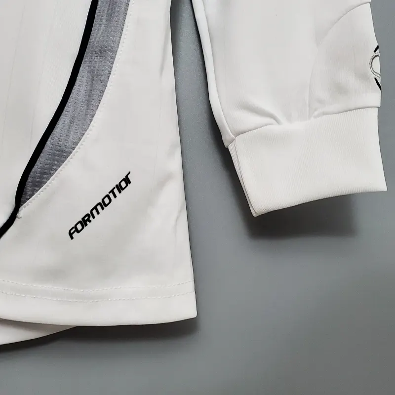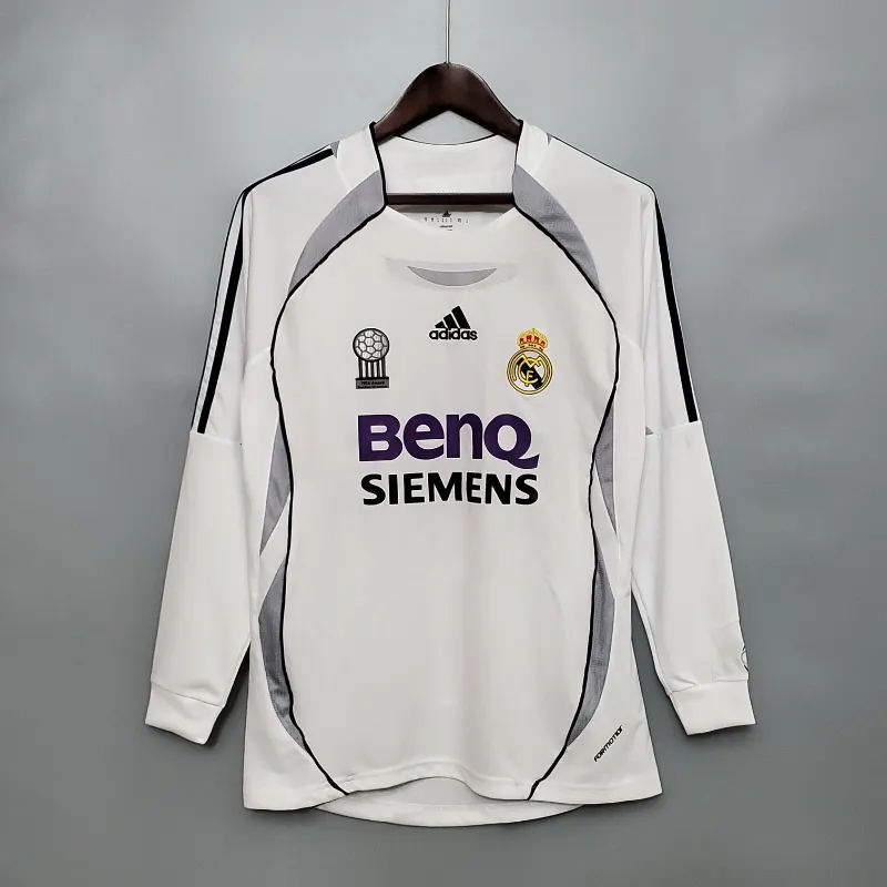 The Real Madrid 2006-07 Home Kit – Long Sleeve – Fan Version is a tribute to the club’s football heritage, offering a perfect blend of style and legacy. Featuring the iconic all-white design, this classic jersey is adorned with black and gold accents, enhancing its timeless appeal. Worn by legendary players like Raúl González, Robinho, and Fabio Cannavaro, this retro kit represents an era of continued success for Real Madrid. With its long sleeves and premium fabric, this vintage jersey is designed for comfort and durability, making it a standout piece in any fan’s collection. Whether you’re celebrating the past or looking to relive the glory days, this classic kit embodies the essence of Real Madrid’s footballing tradition and legacy.