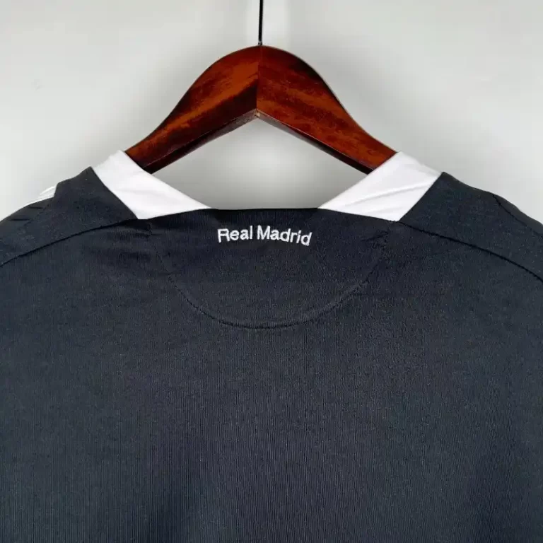 The Real Madrid 2008-09 Away Kit is a true celebration of the club’s football heritage, offering a stylish and bold look that perfectly blends classic jersey design with modern flair. Worn by iconic players such as Cristiano Ronaldo, Kaka, and Raúl, this retro kit showcases the team’s commitment to excellence during a season filled with memorable moments. Featuring a striking black base with subtle details and gold accents, this vintage jersey embodies the elegance and power of Real Madrid’s away kits. A must-have for fans, this classic kit is a timeless piece that continues to honor the club’s rich football legacy.
