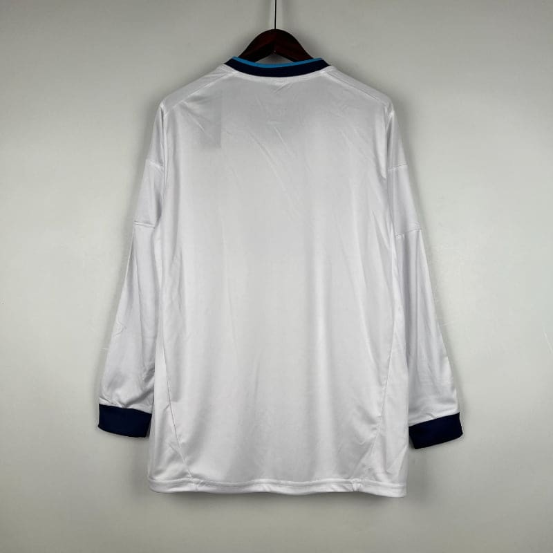 The Real Madrid 2012-13 Home Kit – Long Sleeve – Fan Version is a perfect embodiment of the club’s football heritage, featuring the iconic white color with subtle gold accents that reflect both elegance and prestige. This retro jersey was worn by football legends such as Cristiano Ronaldo, Kaka, and Sergio Ramos during a memorable season. The long sleeve design offers a modern twist on the classic kit, ensuring comfort and style whether you’re cheering from the stands or playing on the pitch. A must-have for any collector or supporter, this vintage jersey celebrates Real Madrid’s rich legacy and success in the world of football.
