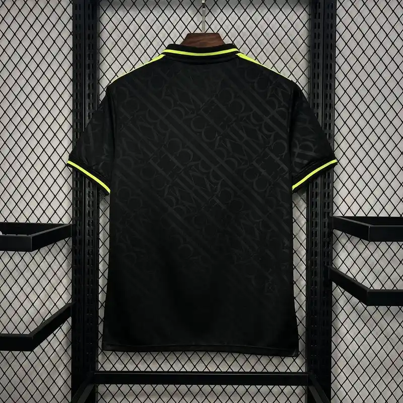 The Real Madrid 24/25 Black and Neon Kit – Fan Version combines cutting-edge style with a nod to football heritage, creating a bold and electrifying design for fans. This classic jersey features a sleek black base accentuated by vibrant neon detailing, offering a dynamic contrast that celebrates modern flair and retro kit aesthetics.