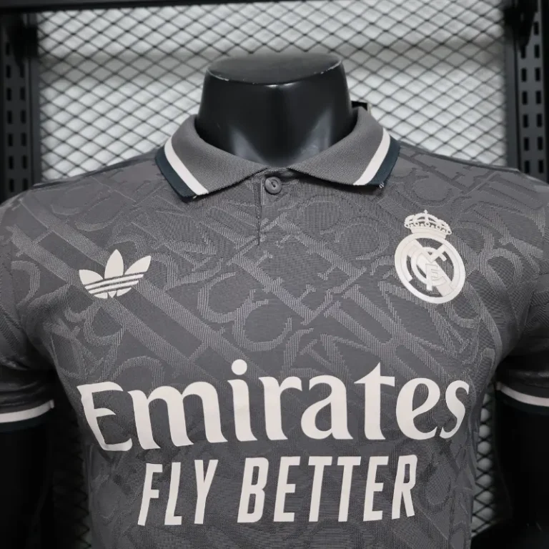 Crafted with premium, lightweight fabric, it offers unparalleled breathability and moisture-wicking performance to keep you cool and comfortable during high-intensity moments. The tailored fit ensures maximum mobility, while the iconic Real Madrid crest proudly displayed on the chest serves as a symbol of the club’s storied legacy. Whether you’re on the pitch or showing your support in style, this third jersey is the ultimate expression of Real Madrid’s excellence.