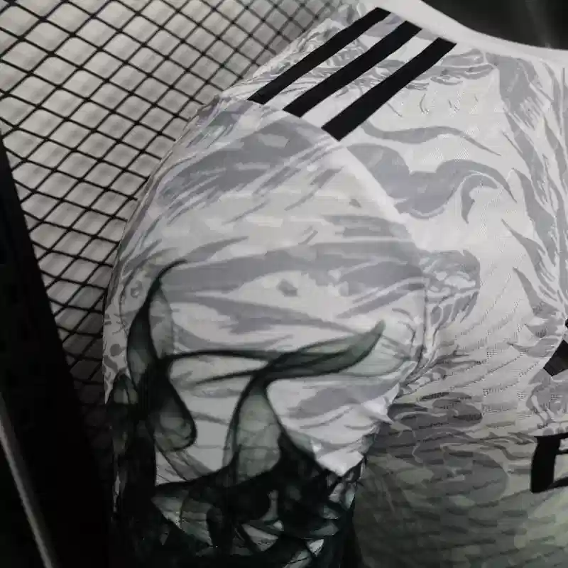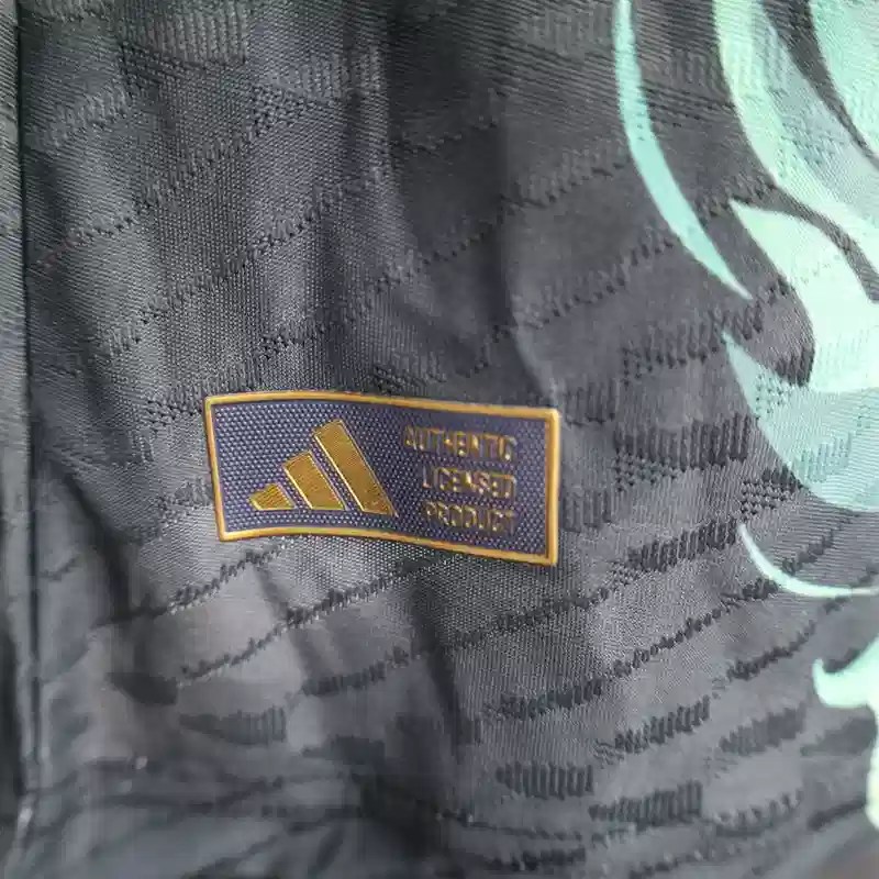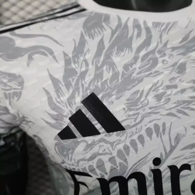 The Real Madrid 25/26 Black Dragon Kit – Player Version combines modern performance with mythical design. Featuring an all-black base adorned with a fierce dragon graphic woven into the fabric, this football jersey channels power, tradition, and elite athleticism.