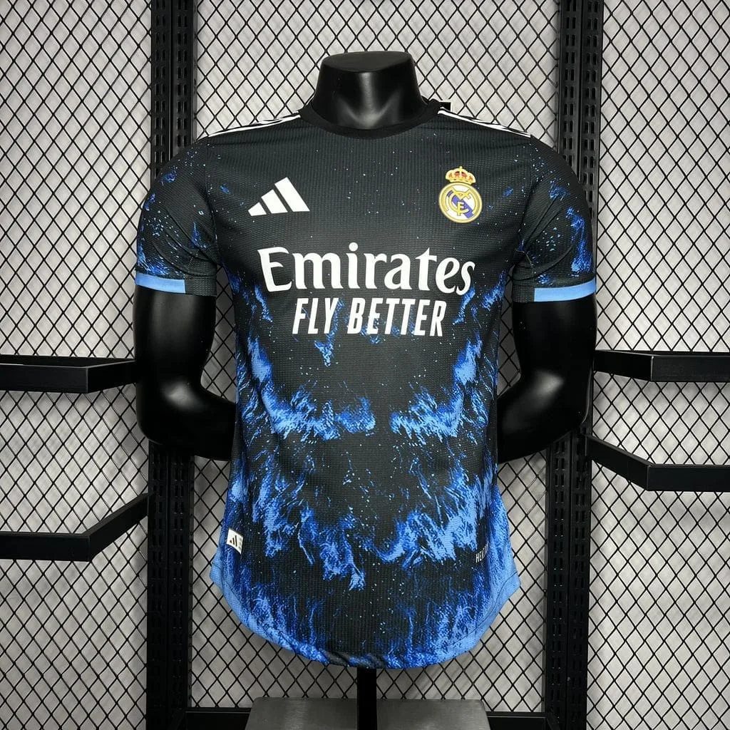 The Real Madrid 2024/25 Ocean Blue Jersey – Player Version is a striking blend of elegance and performance, designed for fans who appreciate both style and functionality. This football jersey features a unique ocean blue color, accented with white and gold details, representing Real Madrid’s commitment to innovation and excellence.