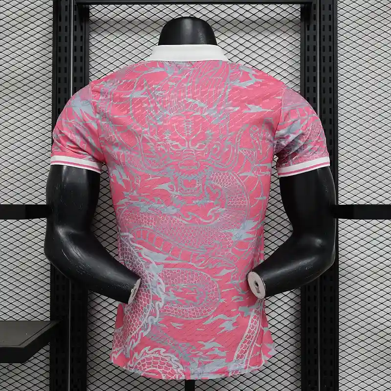 The Real Madrid Pink Dragon Jersey 24/25 – Player Version is a bold testament to football heritage, combining modern style with a nod to retro kits. With its vibrant pink base and fierce dragon graphic, this vintage jersey channels strength and resilience, representing both the power of the club and the artistry behind its iconic legacy. The intricate details of the dragon motif, paired with the high-performance fabric, make this jersey a standout piece for fans and collectors alike.