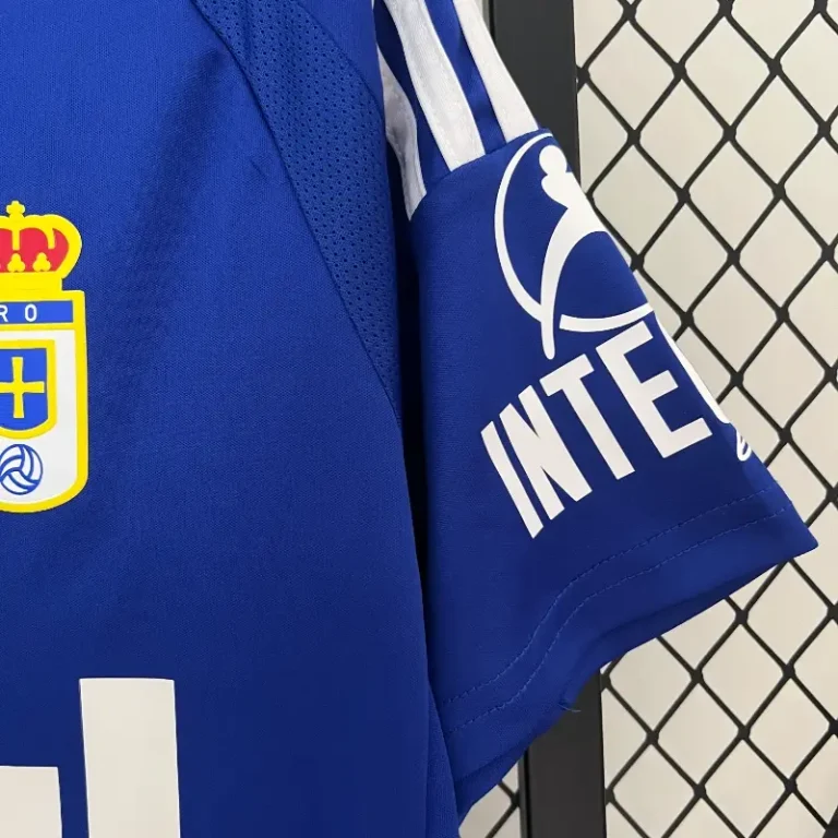 The Real Oviedo Home Kit 24/25 – Fan Version is a modern tribute to the club’s enduring football heritage. Staying true to its classic roots, this jersey features the iconic royal blue base that symbolizes the pride of Asturias. Enhanced by sleek white accents on the collar and sleeve cuffs, the design exudes a perfect blend of retro charm and contemporary style.
