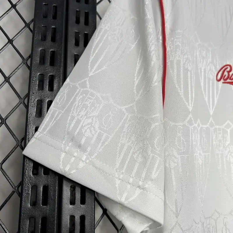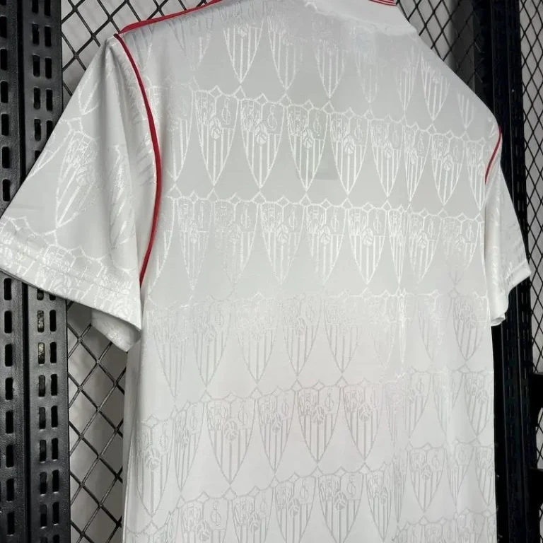 The Sevilla 1991-92 Home Kit is a nostalgic reflection of the club’s rich football heritage, embodying the charm and style of an iconic era in football. This retro kit features a classic white base, accented by bold red and black details around the collar and sleeves, capturing the club’s colors in their purest form. The classic jersey design showcases a sleek, minimalist aesthetic, with sharp lines that remain timeless even decades later.