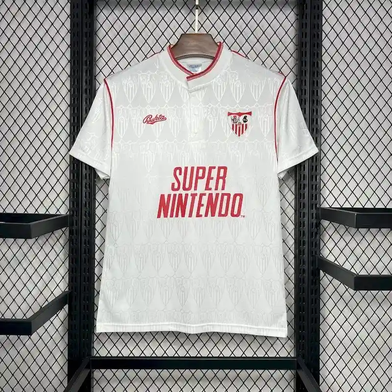 Crafted in lightweight fabric typical of the early ’90s, this vintage jersey exudes a sense of authenticity and history, making it an essential piece for any collector or die-hard Sevilla fan. The retro kit pays homage to the club’s successes during the early ’90s, and its simple yet bold look reflects the classic football spirit of the time. Whether you’re displaying it as part of a collection or proudly wearing it on match day, the 1991-92 Home Kit is a testament to Sevilla’s lasting legacy in the football world.
