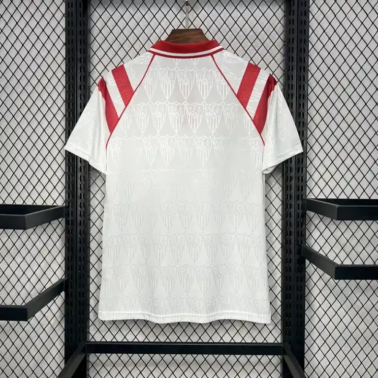 The Sevilla 1992-93 Home Kit is a remarkable piece of football heritage, representing a golden era of classic kit design. With its clean white base complemented by subtle red accents, this retro jersey exudes elegance and pays homage to Sevilla FC’s timeless traditions. The iconic club crest sits proudly on the chest, symbolizing loyalty and passion for the Andalusian team.