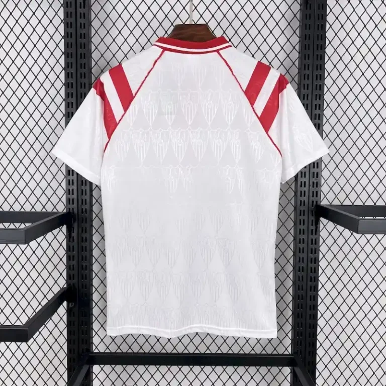 The Sevilla 1992-93 Home Kit is a remarkable piece of football heritage, representing a golden era of classic kit design. With its clean white base complemented by subtle red accents, this retro jersey exudes elegance and pays homage to Sevilla FC’s timeless traditions. The iconic club crest sits proudly on the chest, symbolizing loyalty and passion for the Andalusian team.