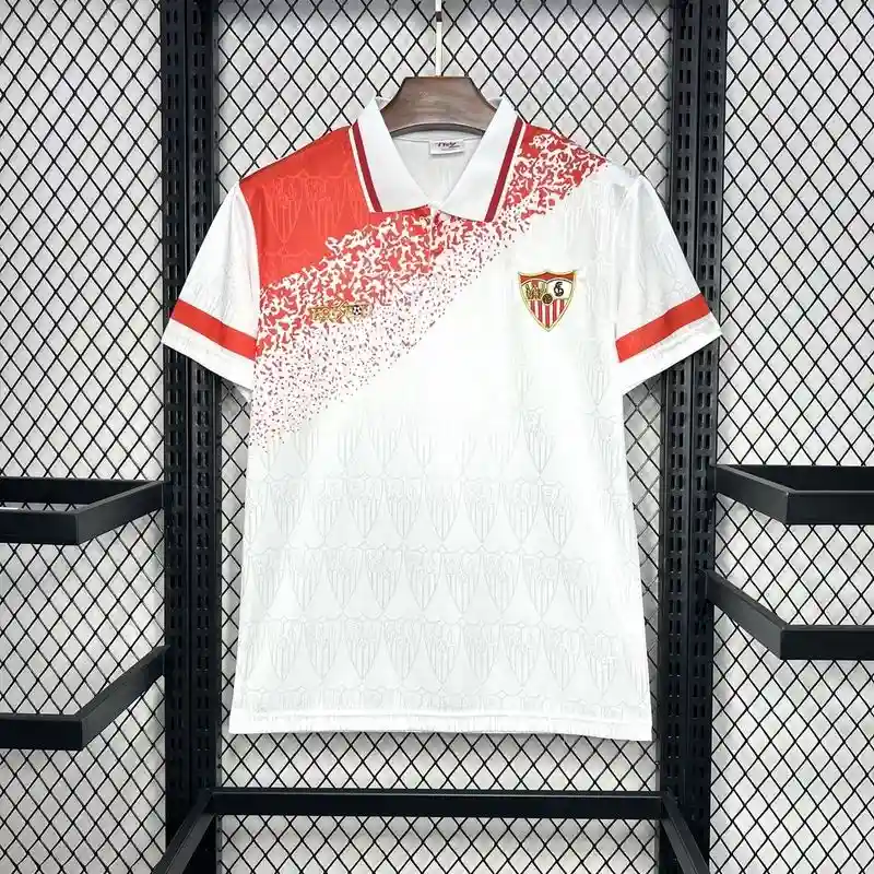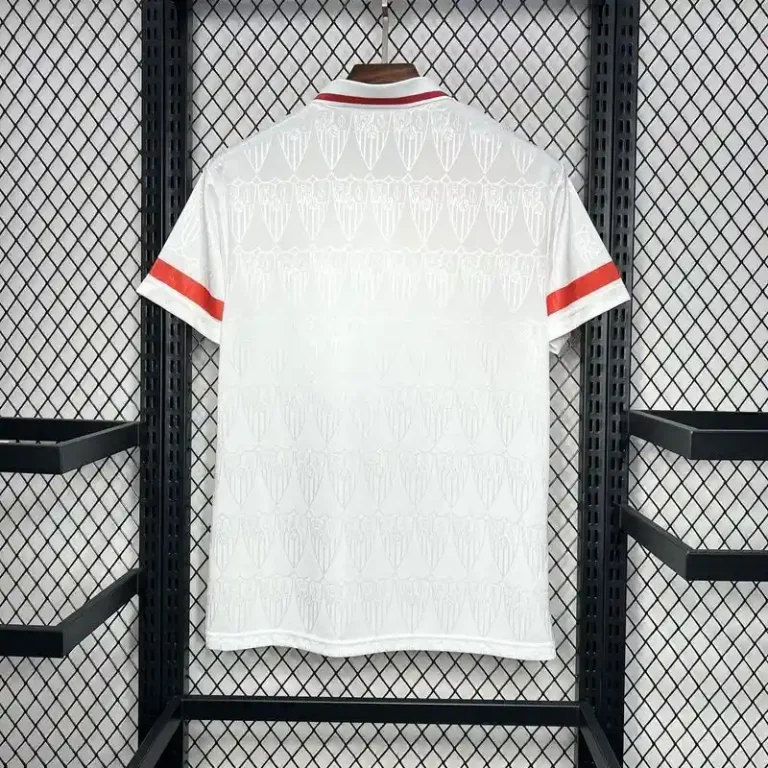 The Sevilla 1993-94 Home Kit is a timeless tribute to football heritage, blending classic design with the passion of Andalusian football. This retro jersey showcases a pristine white base, symbolizing purity and elegance, with subtle red accents along the collar and cuffs, reflecting the club’s iconic colors.