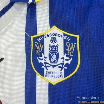 Keywords: Sheffield Wednesday Retro Kit, Sheffield Wednesday 1997/98 Home Shirt, Owls Vintage Football Jersey, Sheffield Wednesday Football Kit, 1990s Retro Football Shirt.