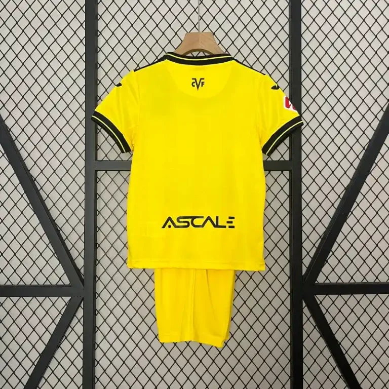 The Villarreal 24/25 Home Kit – Kids is a perfect blend of football heritage and youthful energy. Designed to capture the spirit of the club, this retro kit features the club’s signature yellow color, symbolizing Villarreal’s bright and ambitious identity. The vibrant yellow base is complemented by blue accents, offering a modern take on the classic design while maintaining a nod to the club’s storied past.