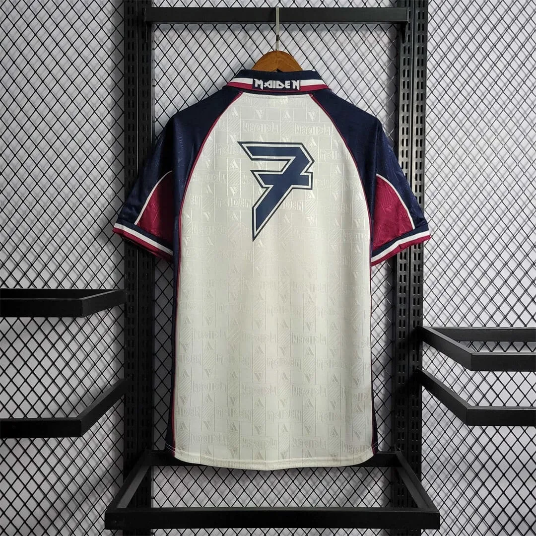 Step into a unique moment in soccer records with the West Ham United 1999 Iron Maiden Away Kit, a Retro Kit that completely blends the club’s historical past with the mythical heavy metal band. This Football Jersey stands proud as a collector’s dream, celebrating both sport and tune in one iconic layout.